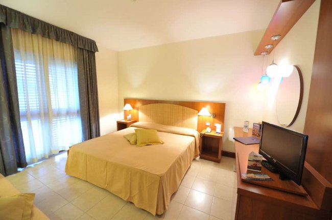 camera dal piano terra al 1° piano; aria condizionata; 1 letto matrimoniale; minifrigo; telefono; tv; cassetta di sicurezza; bagno con box doccia e asciugacapelli. Patio esterno se al piano terra, terrazzino se al primo piano, attrezzati con tavolo e sedie. Evantuale 3° posto: letto singolo. Eventuale 4° posto letto: letto a castello.