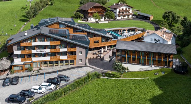 Hotel 4 stelle recentemente ristrutturato, l’Alpenroyal si trova a Castelrotto, ai piedi dell’Alpe di Siusi, in un contesto alpino tra case dipinte e scorci sullo Sciliar. Da Piazza Kraus si ammira il campanile di 82 metri e, nelle giornate limpide, la Punta Santner. Nei dintorni meritano una visita il Museo dei Costumi Tradizionali, Villa Felseck e il Parco Naturale Sciliar-Catinaccio, con sentieri come il “sentiero dei geologi” e le rovine di Castelvecchio con viste panoramiche. Ideale per coppie e famiglie, l’hotel offre un’ampia area benessere con piscina coperta, idromassaggio, saune, sale relax e vital bar, oltre a infinity pool esterna riscaldata tutto l’anno e palestra. Completano l’offerta: sala giochi bimbi, ping-pong e calcio balilla, wi-fi gratuito, ristorante e bar, terrazza solarium, reception, parcheggio coperto e guest pass per mobilità e agevolazioni. Disponibile il noleggio e-bike con 1 giorno incluso per persona a soggiorno. Le camere comfort (35 mq), in stile moderno alpino, sono spaziose e dotate di TV-Sat, minibar, cassaforte, angolo lettura, bagno con doccia e asciugacapelli, balcone o loggia.